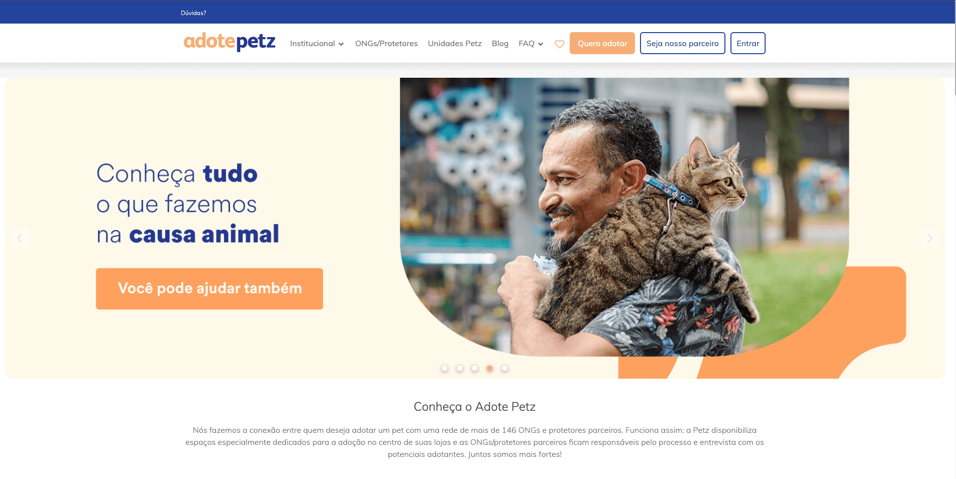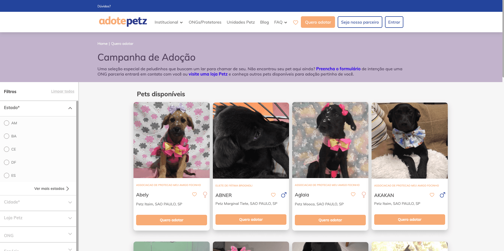 Adote Petz is an adoption platform that connects NGOs and adopters within the Petz ecosystem. The project focuses on making the adoption process clearer, more accessible, and trustworthy.