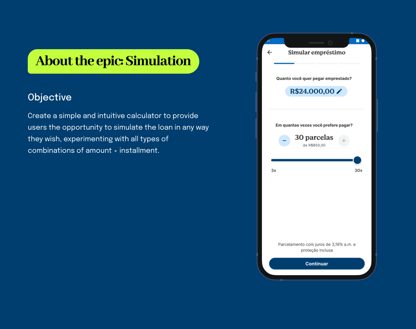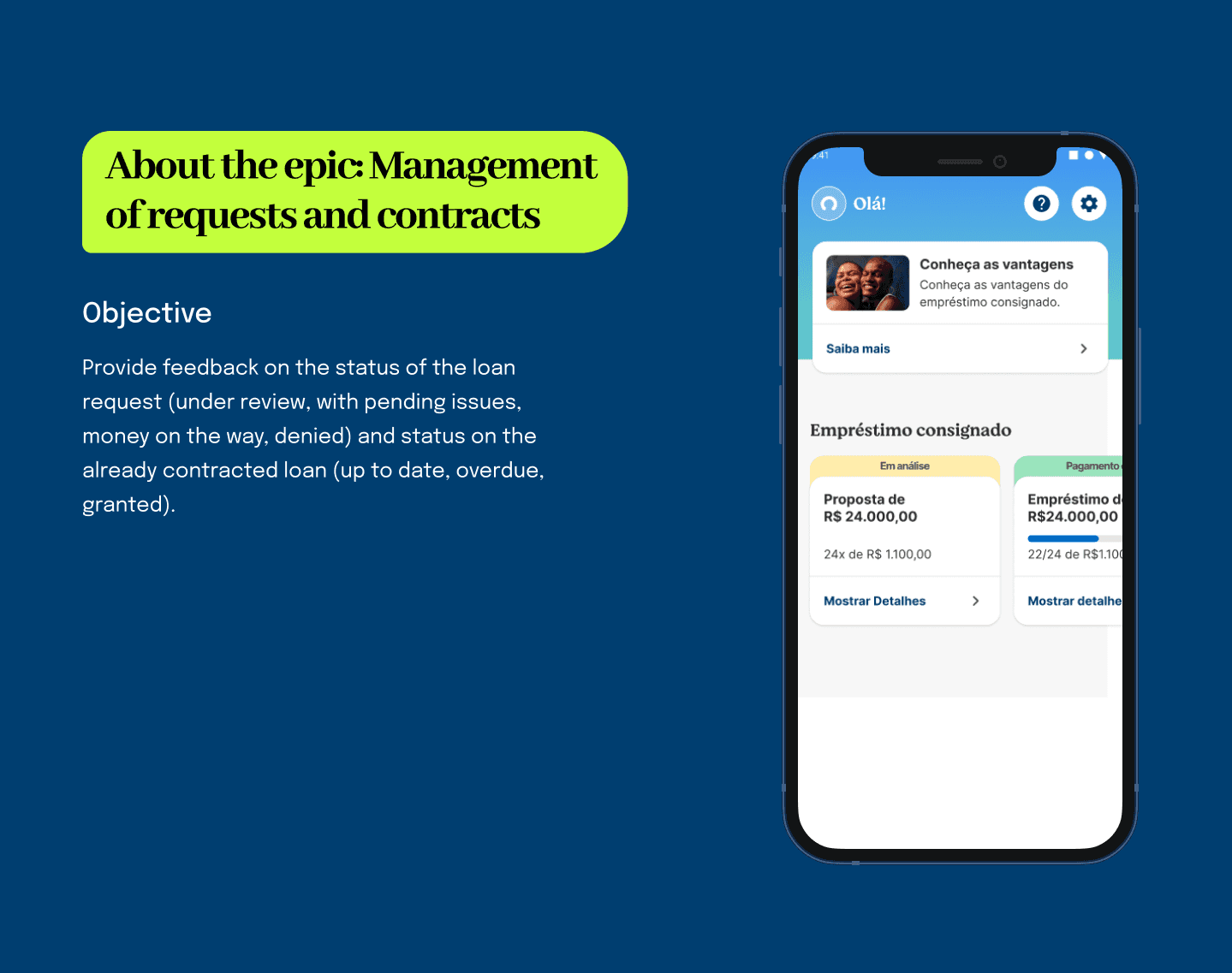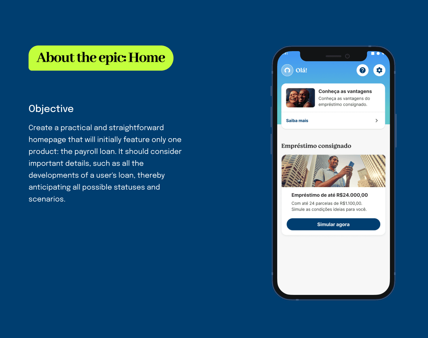 I led the consolidation of these three solutions, redesigning flows, unifying credit rules, and standardizing the interface. The new experience improves journey clarity, reduces friction, and increases product efficiency, delivered across 6 epics in 4 months, achieving an 85% efficiency gain, reducing the flow to 3 clicks, and increasing loan finalization by 20%.