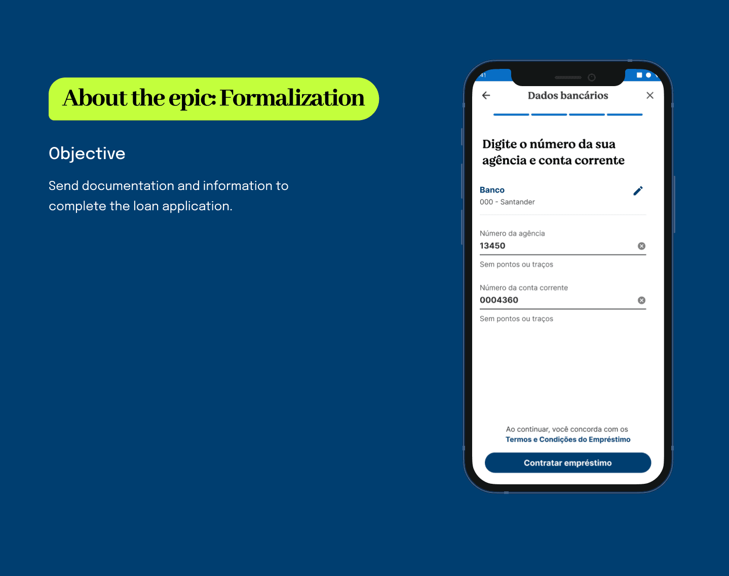 I led the consolidation of three acquired apps into a single payroll loan experience, redesigning flows, unifying product rules, and standardizing the interface. I improved journey clarity, reduced friction, and increased end-to-end efficiency, delivering the project across 6 epics in 4 months. As a result, the experience achieves an 85% efficiency gain, reduces the flow to 3 clicks, and increases loan finalization by 20%.